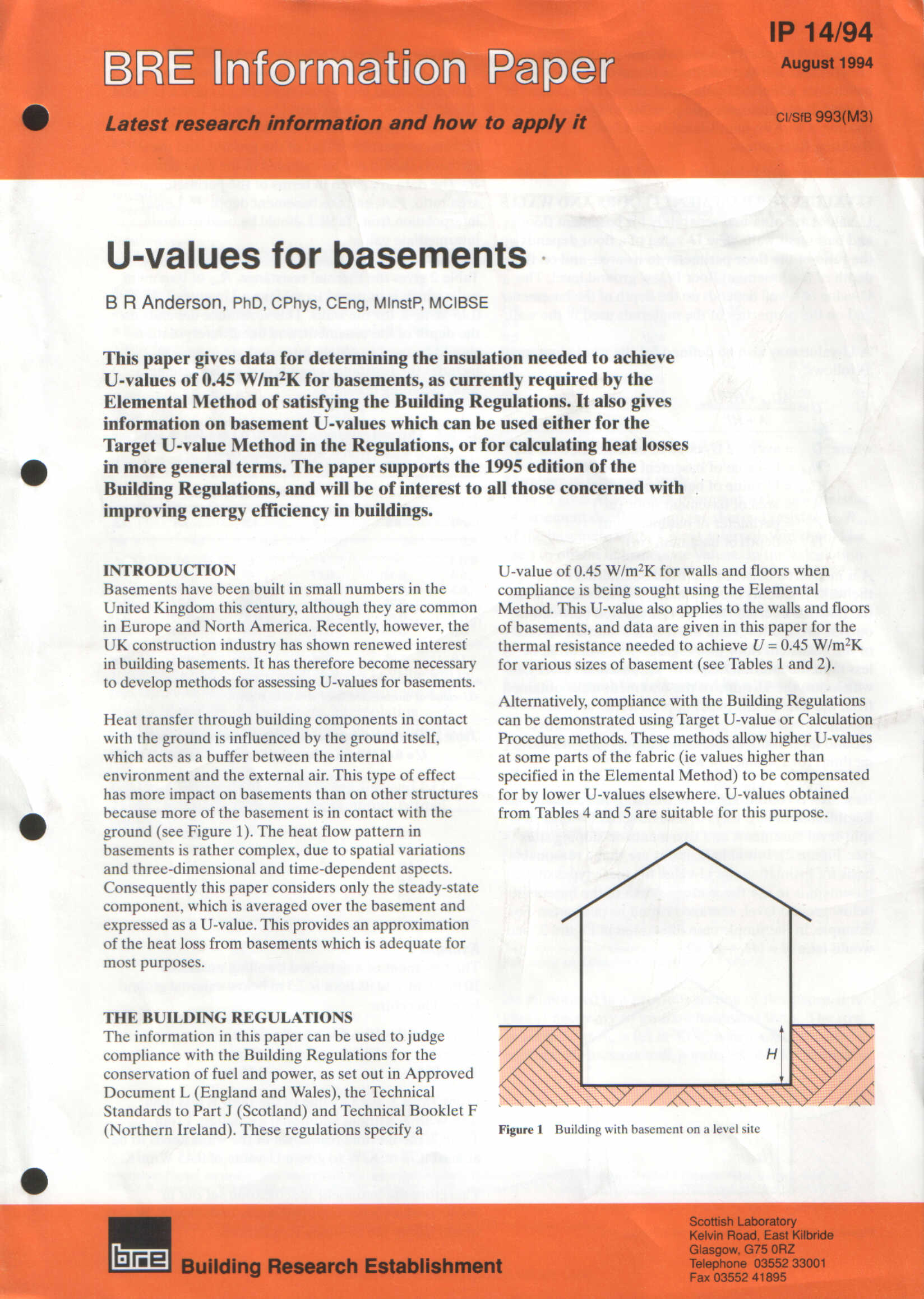 Quote this leaflet and insist that a sensible figure is used for your basement before you choose insulation.